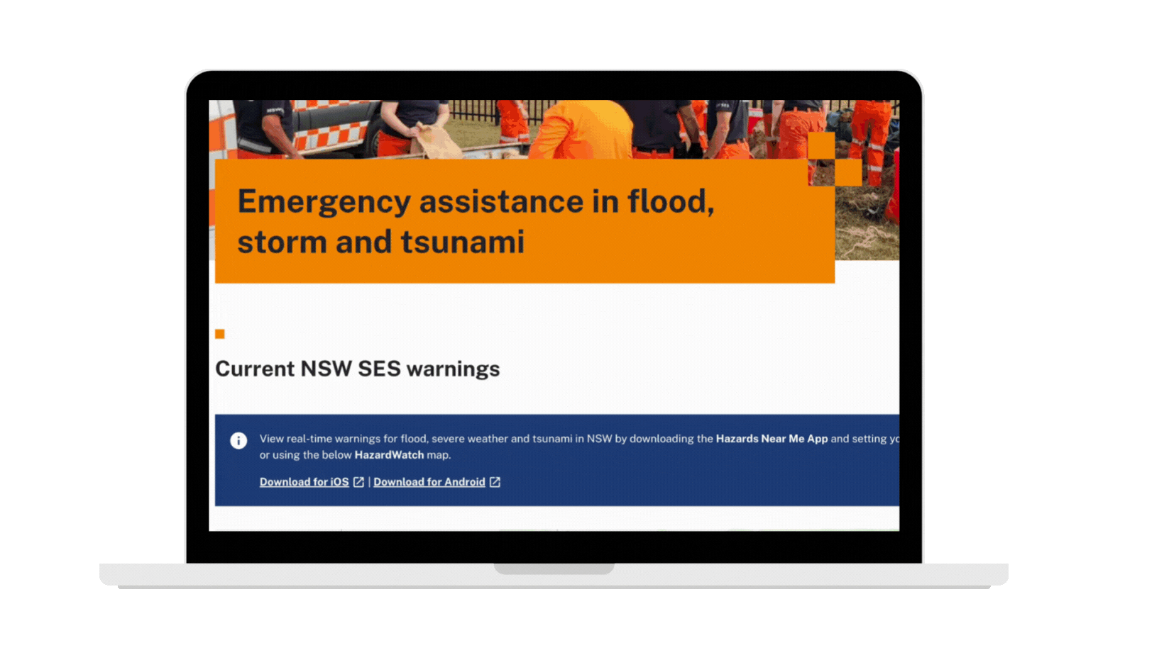 A newly designed Emergency Services website in which community members could effectively assess their current risk, and to better prepare for an extreme weather event.